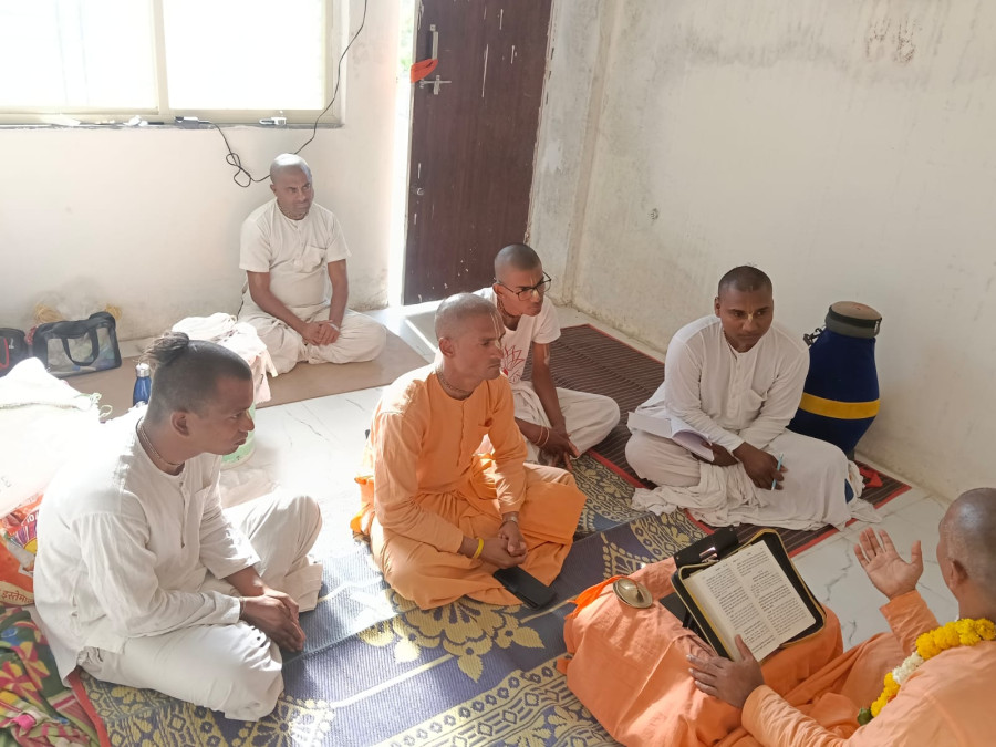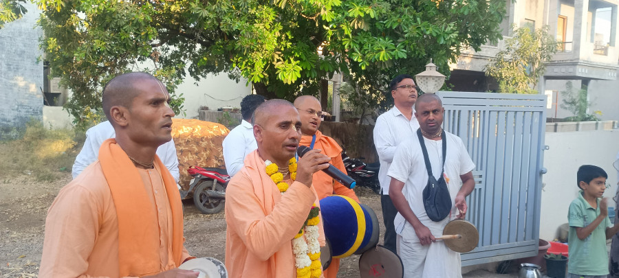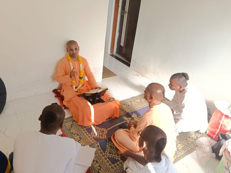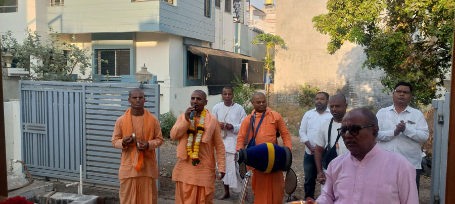 After his foreign tour Acarya Prabhu visited our padayatra when we were at Jamkhed in Ahilyanagar District. His presence infused us with encouragement. He gave Srimad-Bhagavatam class in the morning and guided each one of us. He said the number of padayatris should increase for the service of Their Lordships and asked us to pray to Sri Sri Nitai-Gaurasundar to live together in harmony. We were very uplifted by his words of wisdom.