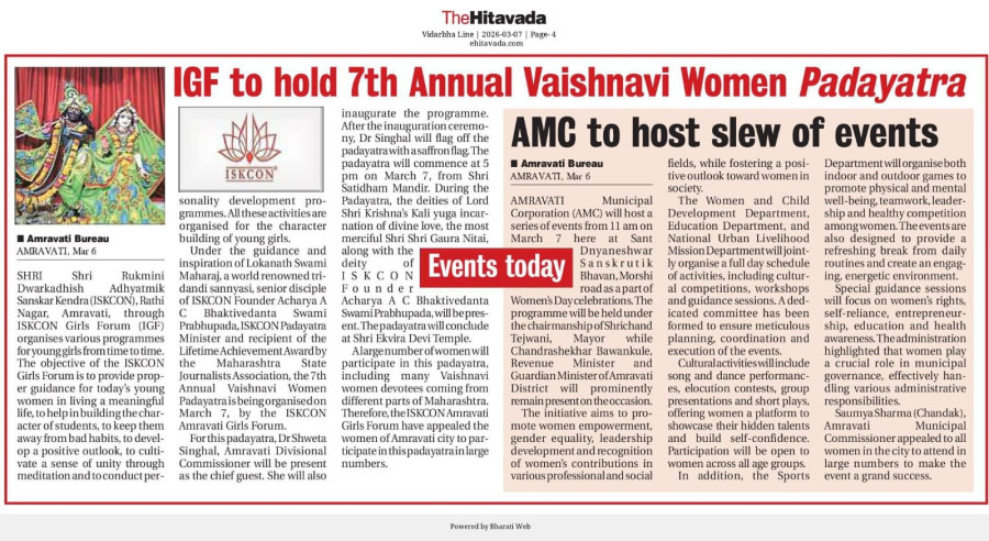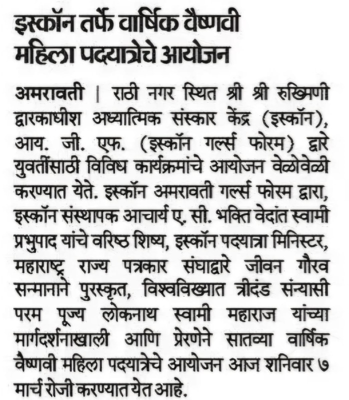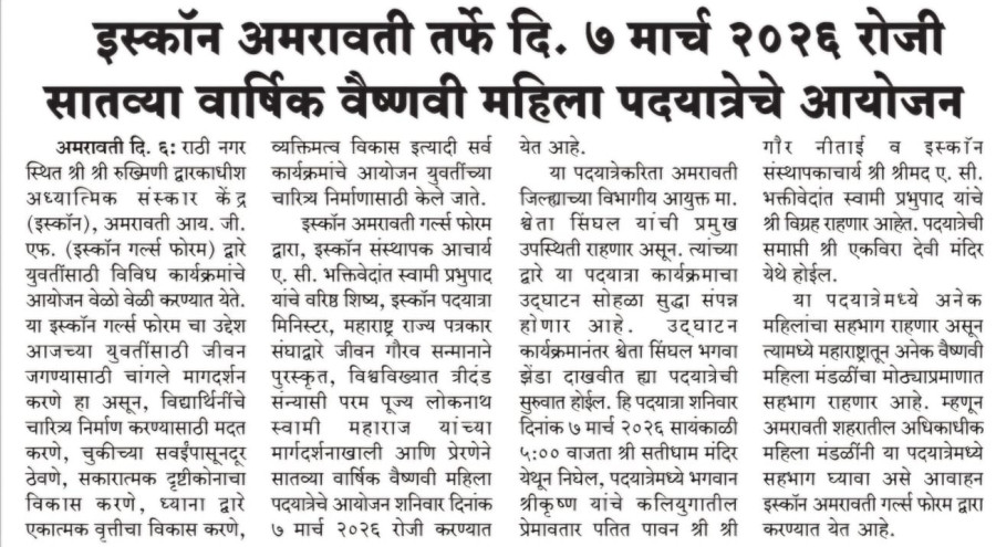 On March 6, 2026, by the mercy of Guru and Gauranga Amravati’s ISKCON Girls Forum held its seventh annual one-day Vaishnavi padayatra.