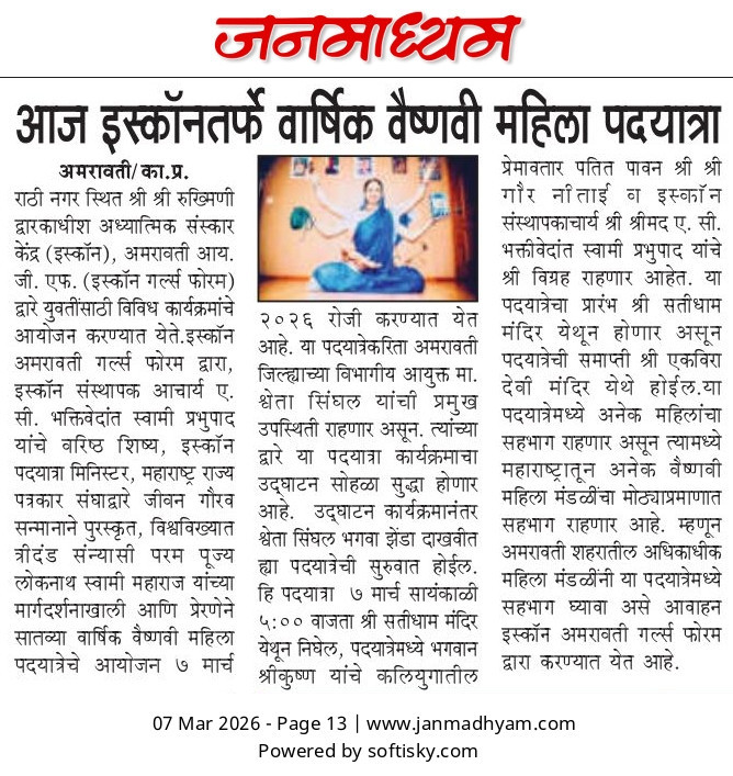 By Jayabhadra devi dasi (IGF preacher ISKCON Amravati and padayatra coordinator)