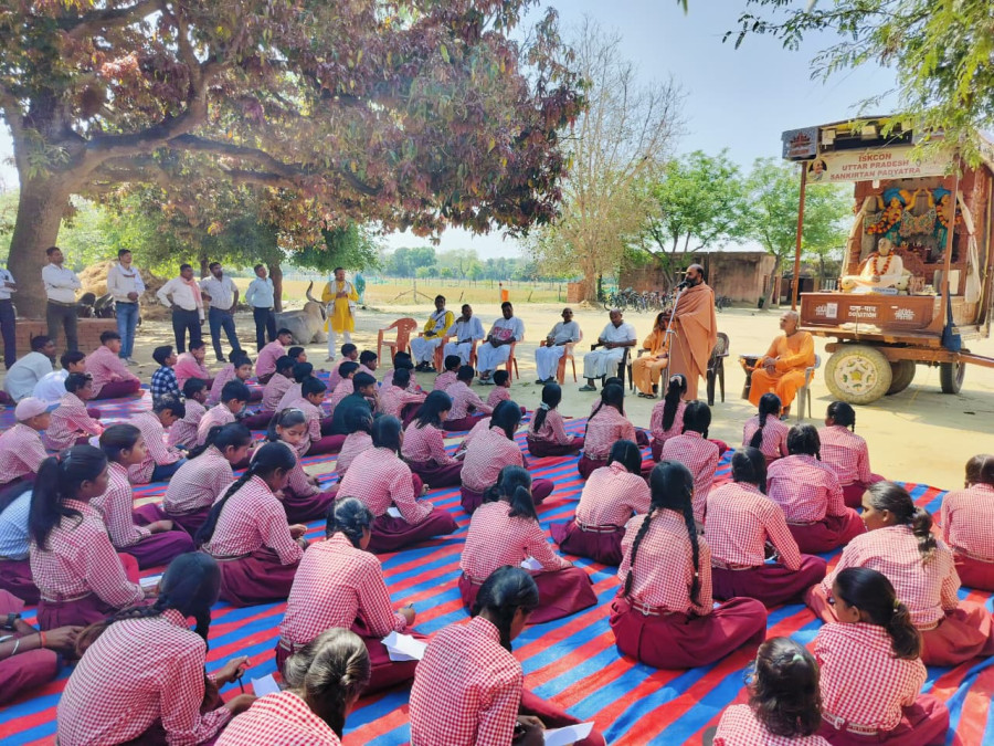 On our padayatra journey we reached Raebareli, a city with a population of about 200,000 in south-central Uttar Pradesh. Wherever we go we try to preach to schoolchildren and their teachers about the importance of the Bhagavad-gita and how it will help to build their character and competence.